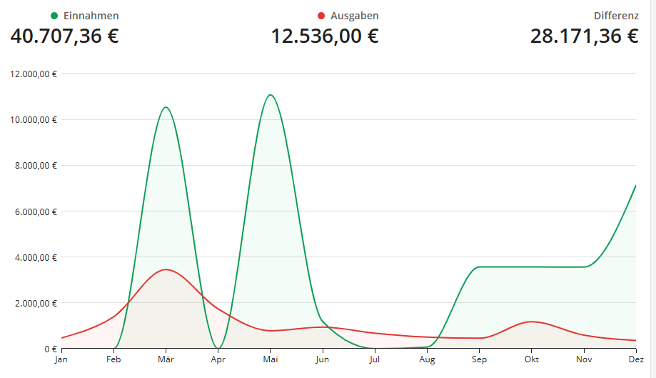 Meine Ausgaben bestanden aus Weiterbildungskosten von 4.000€, Miete von 4.000€ sowie Hardware und Sonstiges für 4.500€